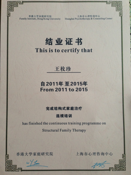 跟随香港大学家庭研究院的李维榕教授学习三年结构式家庭治疗,终于毕业了。